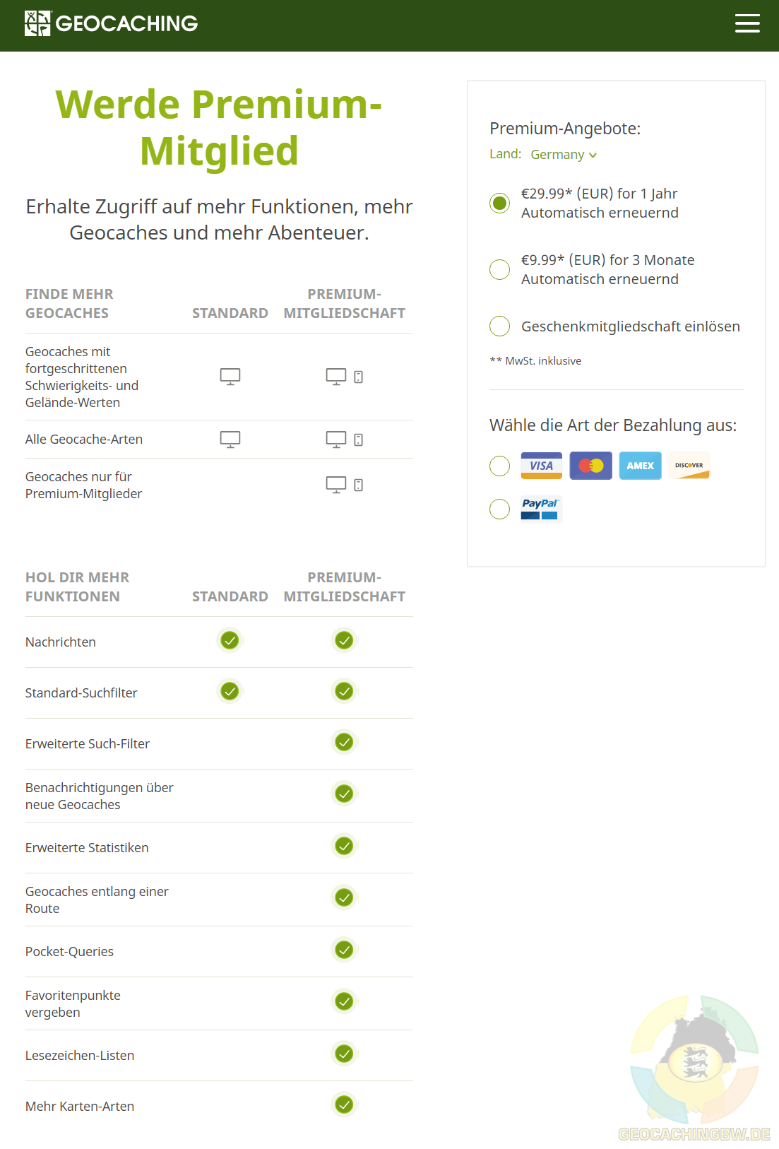 Derzeit wird die Premium Mitgliedschaft bei geocaching.com im Rahmen einer Promo für nur 14,99 € angeboten.