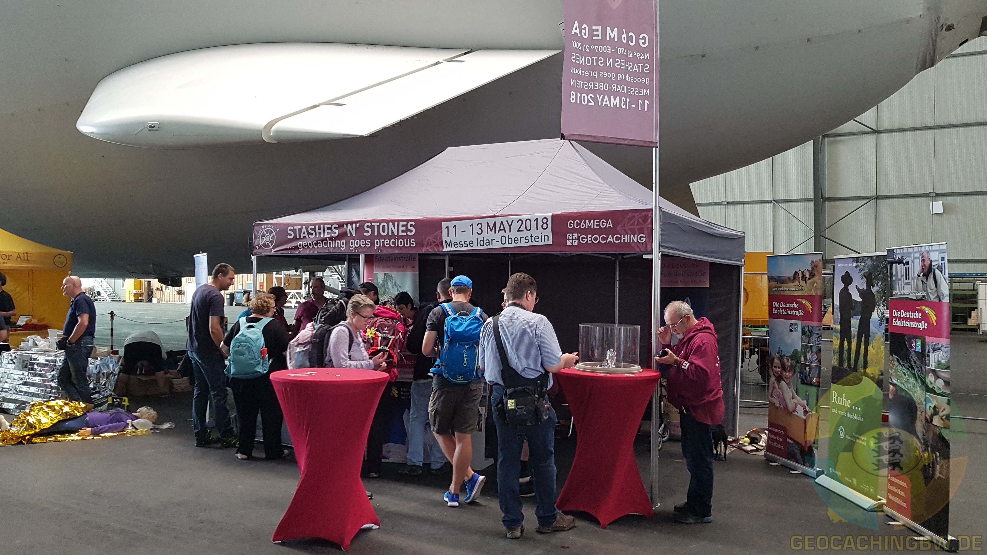 Auch die Händler tragen mit ihren Ständen zum Gelingen eines Events bei, in Friedrichshafen waren die bekannten Namen der Branche vertreten und konnten sicher die meisten Wünsche und Bedürfnisse der Geocacher erfüllen. Es ist ja auch praktisch wenn man ohne Versandkosten einkaufen kann. Und die Halle mit Zeppelin darin war ja auch mal ein ganz anderes Ambiente!