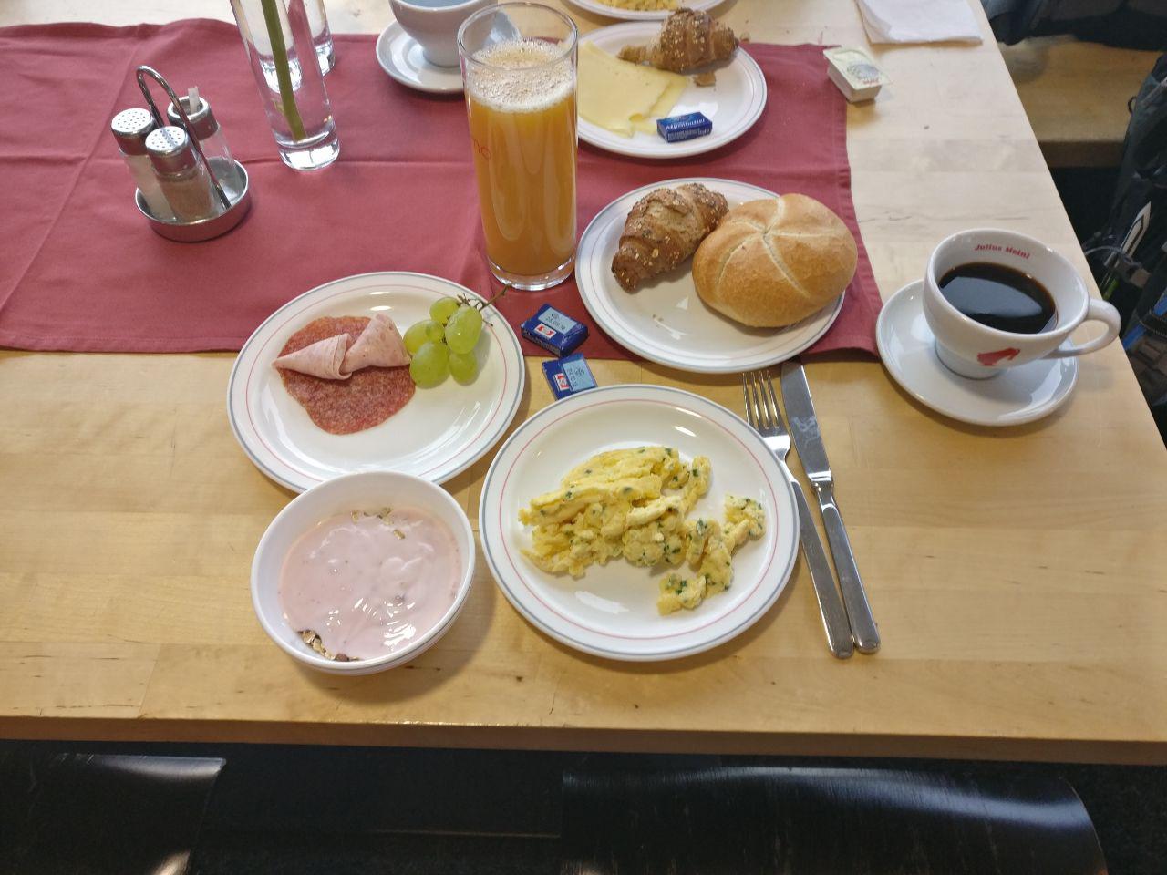 Heute morgen konnten wir erst ab 7 Uhr frühstücken – das kam uns allen sehr gelegen, steckte uns doch der gestrige Tag noch in den Knochen. Entweder waren die Beine noch schwer oder die ersten Blasen machten sich bemerkbar. Das Wetter war heute auch nicht sonderlich gut: der Venet war fast komplett in Wolken verhüllt. So fiel uns die Entscheidung auf den Panoramaweg auszuweichen nicht schwer, und wir ließen den Gipfelgrat links liegen.