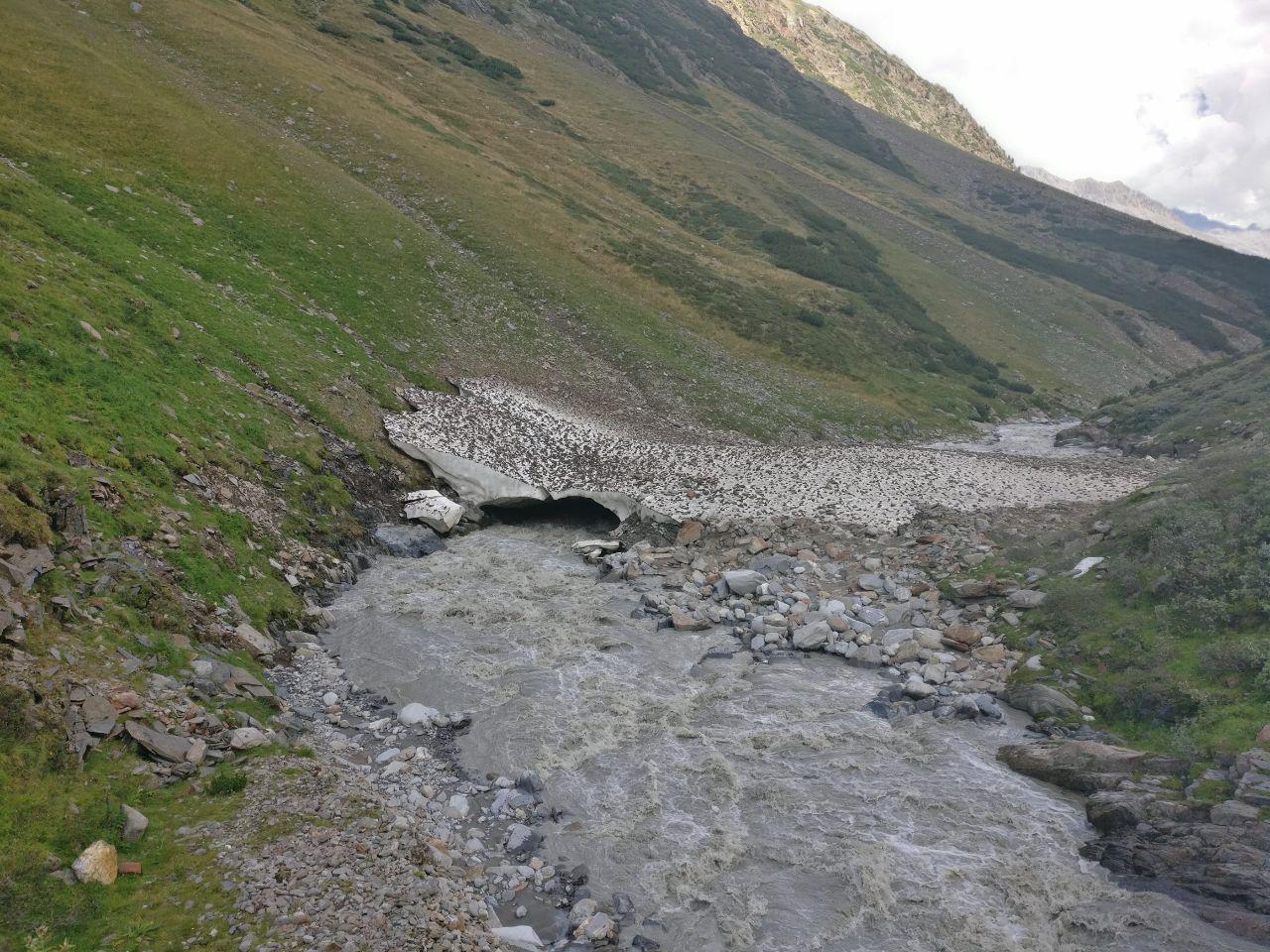 Dort gönnten wir uns nochmals eine kurze Rast bevor wir den Aufstieg Richtung Martin-Busch-Hütte starteten. Da der Normalweg schon seit zwei Jahren aufgrund eines Felssturzes gesperrt ist, mussten wir einen kleinen aber schönen Umweg in Kauf nehmen und kamen nach 2:45 Stunden auf der Hütte an. Oft konnten wir noch Zeugen des vergangenen harten Winters sehen: an vielen Stellen war der reißende Fluss noch von Resten der Lawinen des Frühjahrs überdeckt.