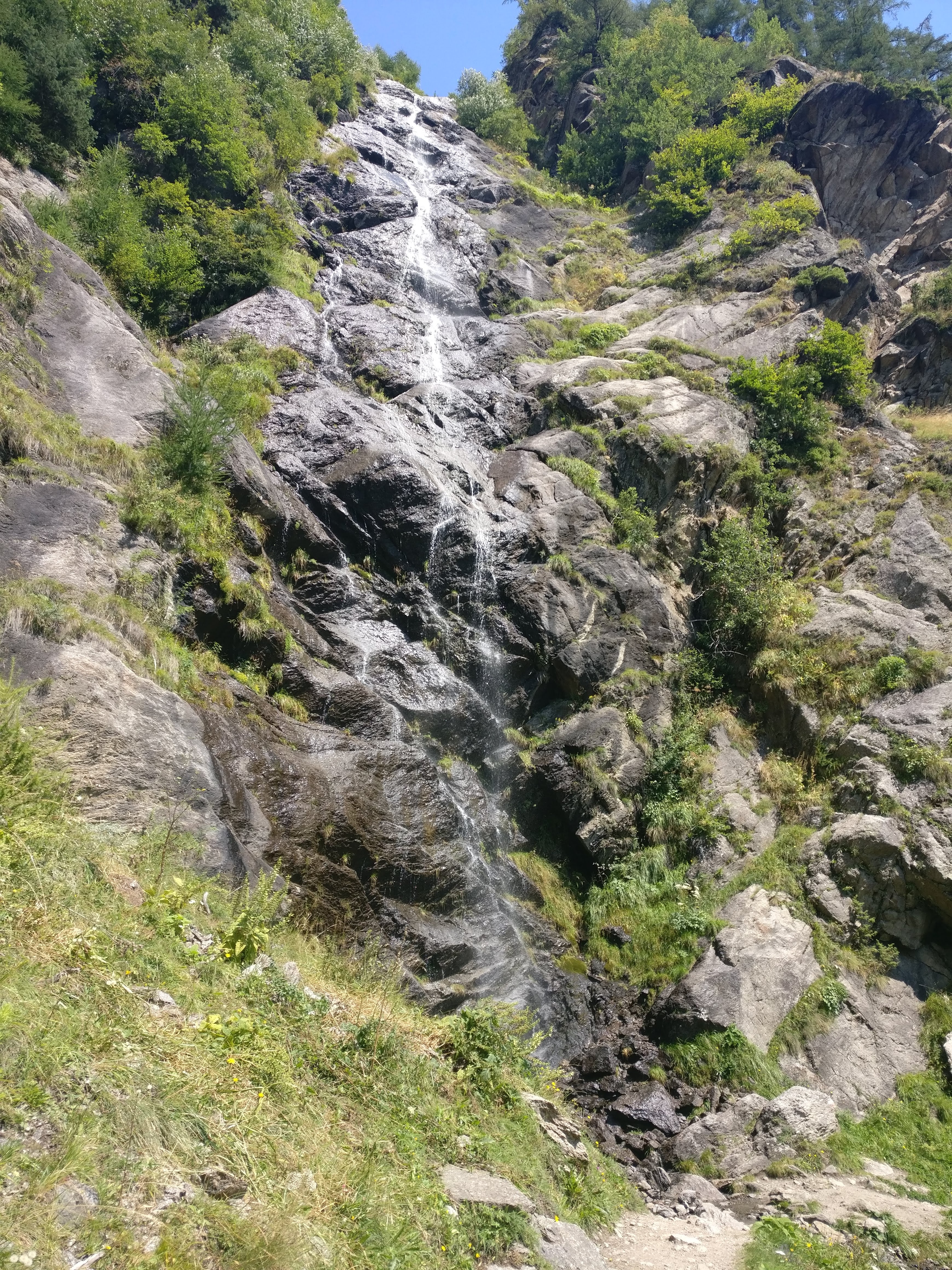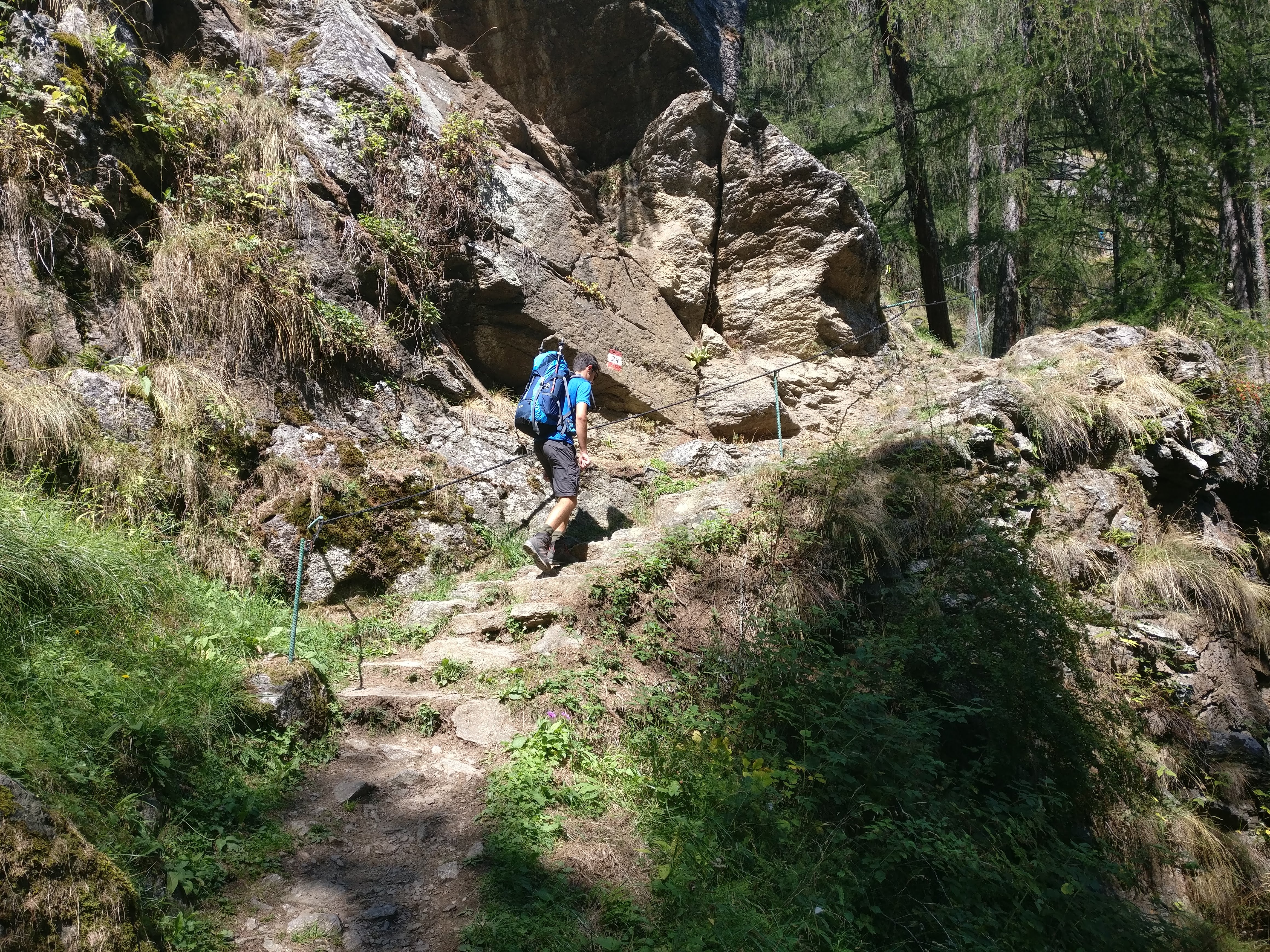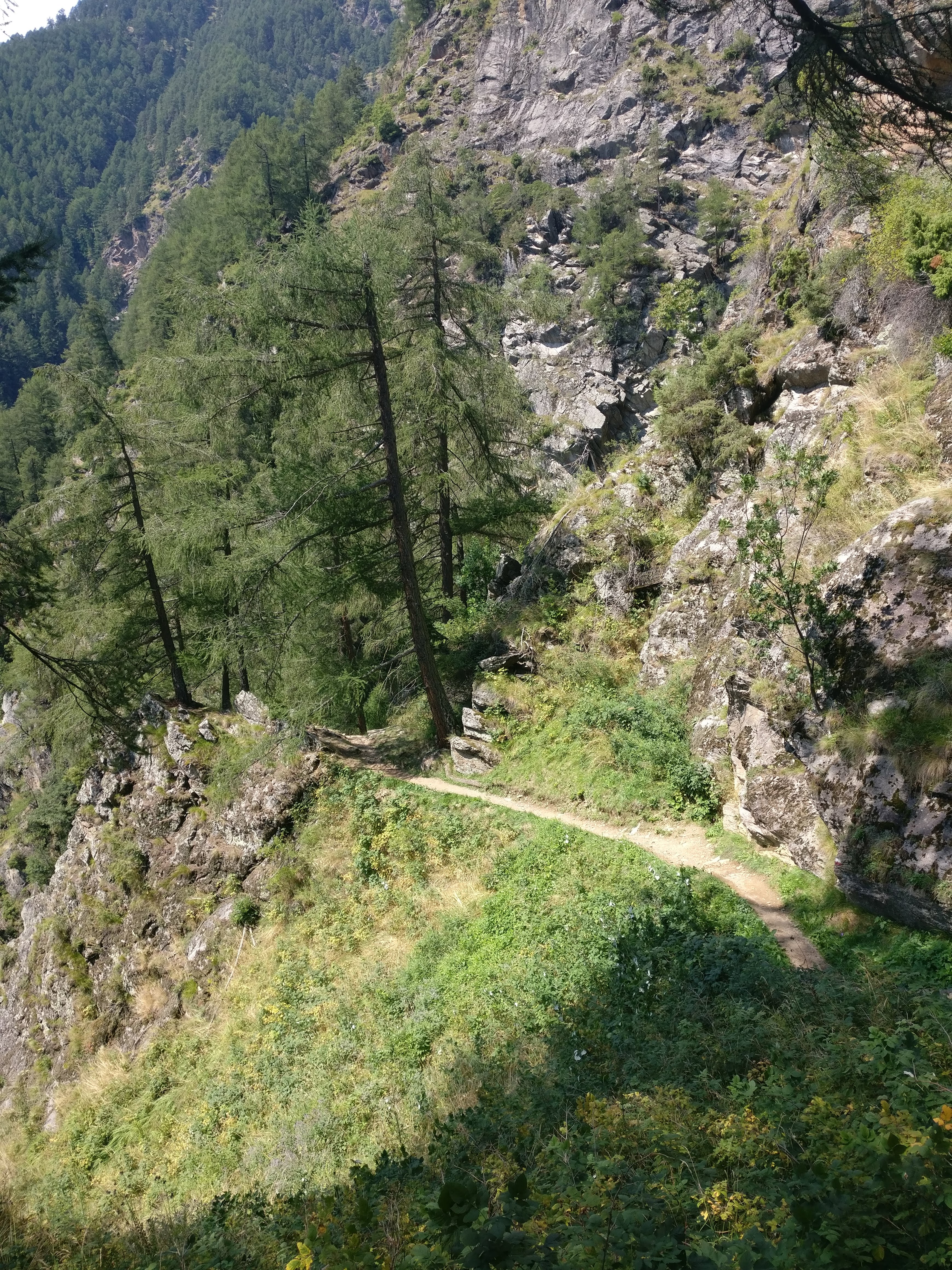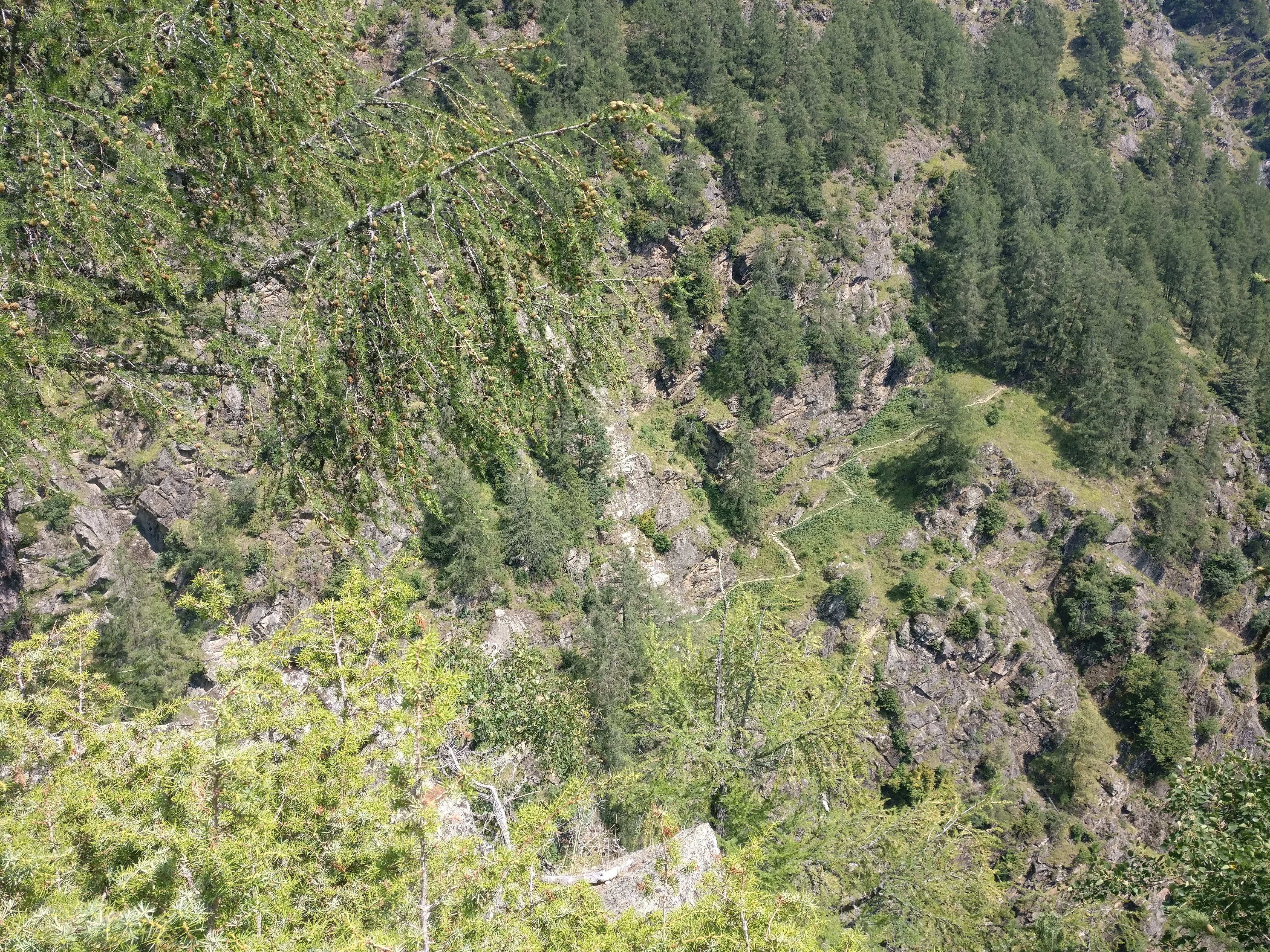 Unser Weg zog sich anfangs an den Hängen des Schnalstal entlang und wechselte dann unmerklich ins Etschtal. Immer wieder hatten wir atemberaubende Aussicht auf das uns zu Füssen liegende Tal, die hinter uns liegende Zentralalpen und sogar die Dolomiten könnten wir schemenhaft in der Ferne erkennen