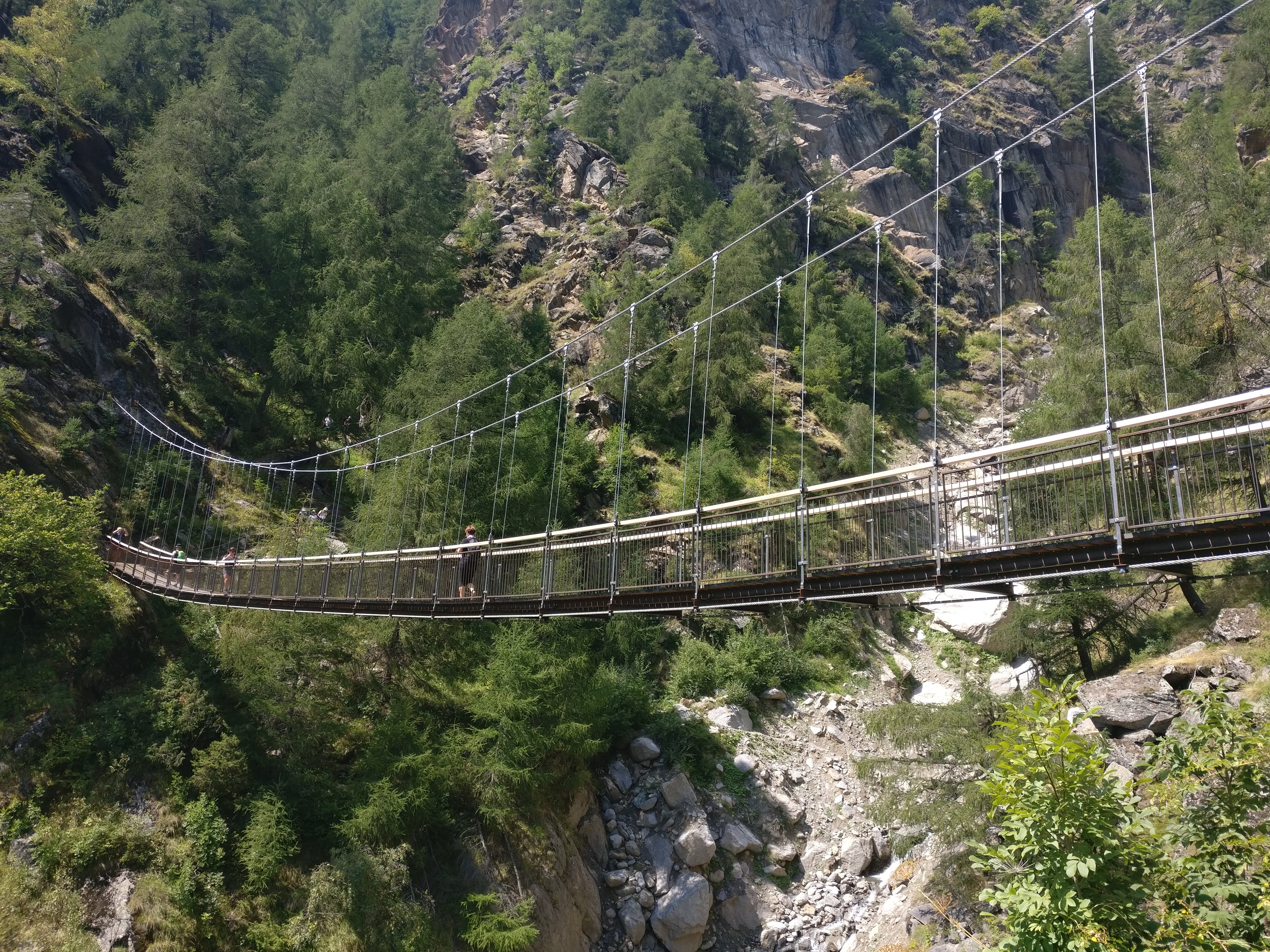 Nach gut drei Stunden und 10km Wegstrecke gönnten wir uns eine kleine Pause mit einer Brotzeit. Viel zu gemütlich war es hier auf der Terrasse und aus die kleinen Pause dehnte sich dann auf eine Stunde aus. Dies war aber auch nötig! Lag doch vor uns unsere heutige Herrausforderung: das Tal der 1000 Stufen! Ein schmaler Weg, teils in den Fels geschlagen, teils mit Eisenleitern versehen und mit zwei spektakulären Hängebrücken! Hier wurde nochmals unsere Trittsicherheit gefordert und unsere Kondition bis an die Grenzen beansprucht. Gefühlt mussten wir fast 2000 Stufen bewältigen, bis wir endlich wieder einen „normalen“ Wanderpfad unter den Schuhen hatten.
